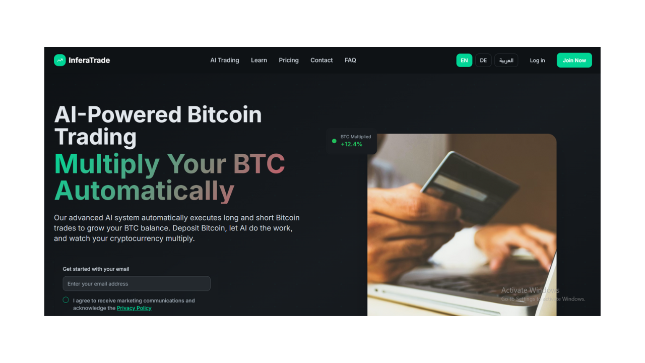 InferaTrade positioniert seinen Service als Möglichkeit, ruhende Bitcoin-Bestände in aktiv gehandelte Assets zu verwandeln. Anstatt BTC ohne Aktivität zu halten, können Nutzer diese einem KI-System zuweisen, das kontinuierlich am Markt agiert.